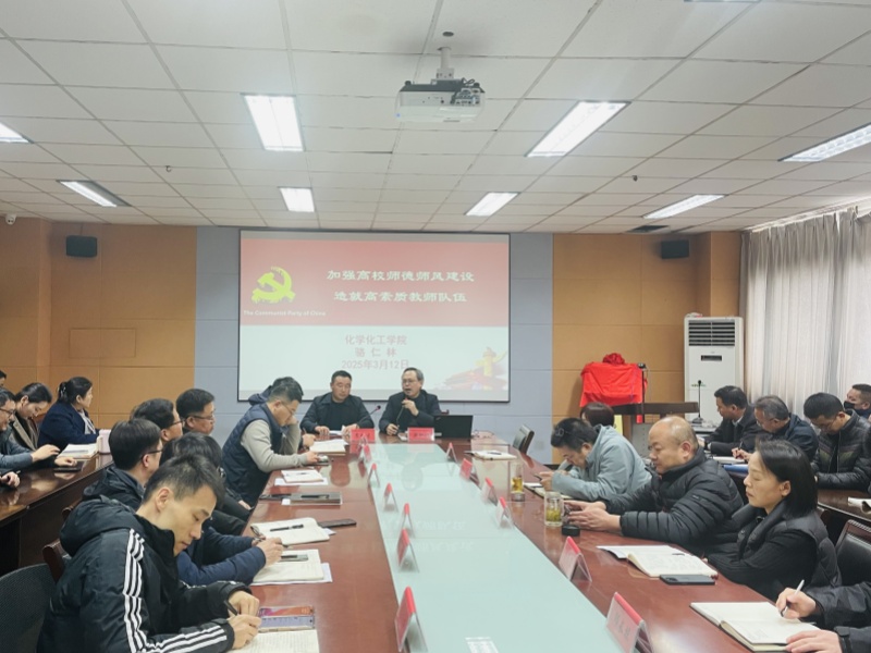 为深入贯彻党的二十大精神,全面落实新时代教师队伍建设要求,3月12日下午,化学化工学院党委组织召开2025年师德师风专题教育会议。会议由学院党委书记骆仁林主持并作专题报告,学院全体教职工参会。
